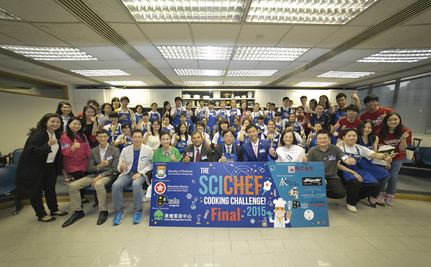 香港大學理學院與Go.Asia及教育局聯合舉辦的首屆「科學廚神挑戰賽」總決賽於5 月9日(星期六)圓滿結束。十二隊初中生成功進入總決賽的隊伍經過六十分鐘烹飪比拼,最終由德望學校憑著「海藻甜品四重奏」成功奪得總冠軍及最佳創意獎,寶血會上智英文書院則憑「雞胸沙律」囊括亞軍及最佳參與學校獎,而季軍則由基督教女青年會丘佐榮中學憑「蛋白質多樣化」奪得。