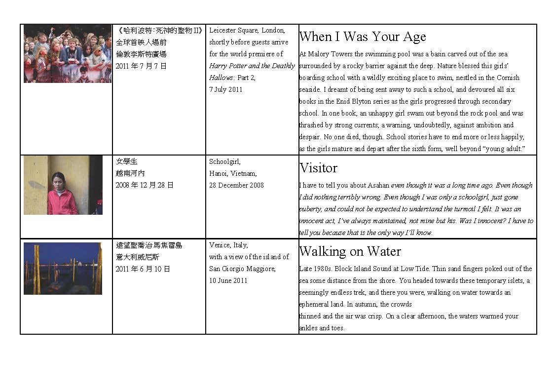 本次展覽的軸心是一系列環環相扣的影像和文字。它始於一幀攝影,選自祈大衛的作品集;許素細根據這幀攝影寫了一篇文章; 然而,雖然許素細的文章是由祈大衛的攝影所觸發,卻未必有對其影像作出回應。祈大衛又再根據許素細文字選出下一幀攝影作品。如此循環往復,最終十二件影像和文字作品既「斷」且「續」的重新書寫和呈現回憶,令人陶醉。藝術作品以互動的方式出現,藝術家的生活被它「打斷」了,不得不重新審視自己的經歷和創作。最終,他們創作出一種「連歌」,然而他們的作品並不限制於詩歌的形式。