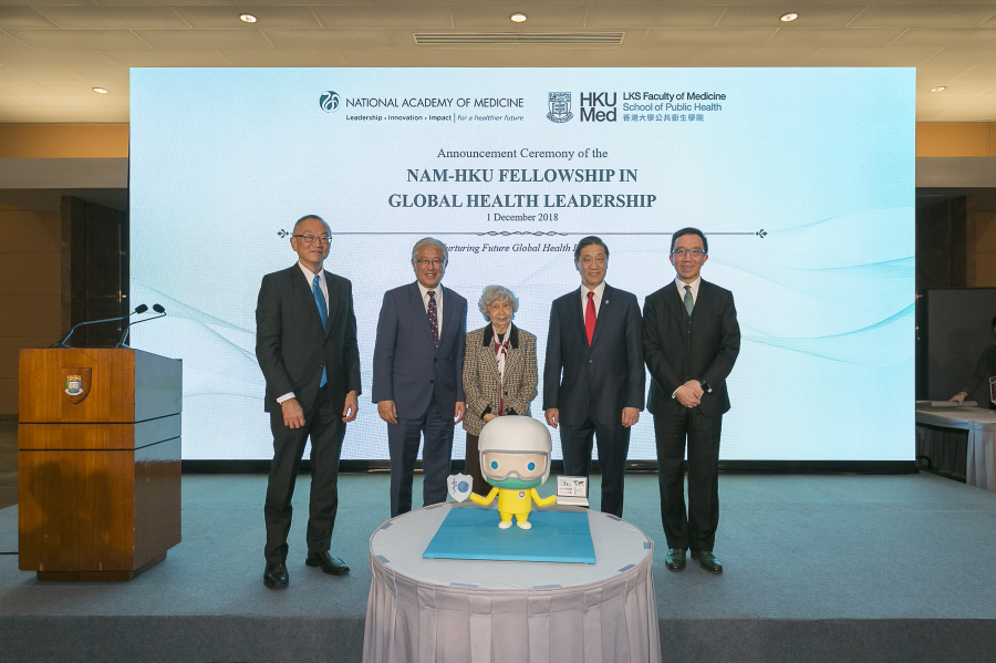 香港大學(港大)李嘉誠醫學院公共衞生學院與美國國家醫學院(The US National Academy of Medicine,簡稱NAM)共同成立「美國國家醫學院-香港大學環球衞生領袖獎助金」。獎助金啟動儀式於今天(2018年12月1日)在香港會議展覽中心順利舉行。