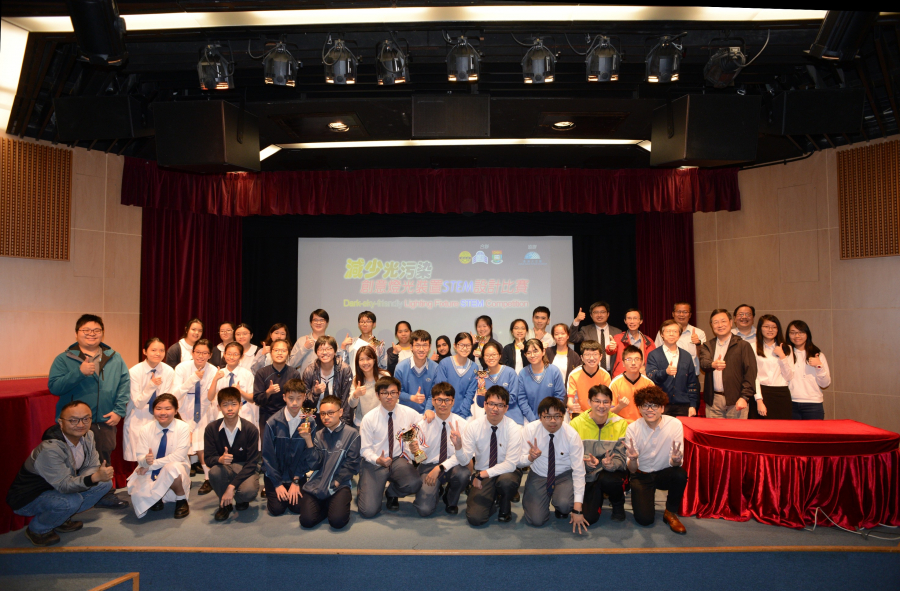 「減少光污染創意燈光裝置 STEM 設計比賽」由港大物理系、電機電子工程系和嗇色園主辦可觀自然教育中心暨天文館合辦,香港太空館協辦,並獲大學教育資助委員會撥款的港大知識交流基金資助。比賽共有8間學校的中學生參賽。每隊參賽隊伍須提交一份有助減少光污染的戶外燈光裝置(實物原大或比例模型)及技術書面報告參賽。比賽的口述匯報環節及頒獎典禮已於本年4月14日於香港太空館進行,由專家組成的評審團將按作品的質素、STEM 的應用和作品的原創性等,選出冠、亞、季軍和優異獎獎項。