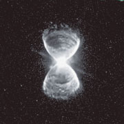 | 美國天文學會新聞稿:2007年1月9日09:20西雅圖時間發放 [請勿於香港時間2007年1月10日凌晨01:20前發放] 香港大學理學院院長、物理系郭新教授及台灣國立中央大學的夏志浩先生,將於今日西雅圖美國天文學會的會議上,共同發表他們的發現──哈勃12號星雲臨死時噴出的層層煙環。這些煙環是這顆恆星在其十億年生命中最後的萬年歲月所產生的。 表面上看似毫不顯眼的哈勃12號星雲,早於1921年已被著名天文學家艾雲哈勃首先發現。從哈勃太空望遠鏡拍得的照片所見,此星體呈漏斗形,腰部纖細。郭新教授和夏志浩詳細分析這些照片時,發現有九個神秘的環,一個接一個的環繞著這星雲的軸心。 為何一顆垂死的恒星,會產生這些形態完美的圓形環狀,迄今仍然是一個謎。大部份恒星在其生命將終結時,均會變成行星狀星雲,而我們的太陽,亦將於五十億年後經歷這個轉變。行星狀星雲有多種不同形狀,但這種形態轉變的詳細物理過程,仍然有待考究。郭教授相信,這些從哈勃12號星雲觀測所見的層圈,和星雲的形成不無關係。「一連串高速、周期性、有方向性的爆發,將哈勃12號星雲雕刻成這漏斗形狀。探測這些環狀,將有助我們瞭解星體最後的蛻變過程。」郭教授解釋。 擁有卓越攝影效果的哈勃太空望遠鏡,曾拍出許多美麗的星雲照片,將其豐富色彩和奇特形狀表露無遺。而這批哈勃12號星雲的照片,更高度提高天文學家對恆星死亡的問題追尋答案的興趣。從哈勃望遠鏡拍得的照片,去了解哈勃於八十五年前所發現的星體,可說是最適合不過。 郭新教授是研究行星狀星雲的專家,他於1978年所提出的行星狀星雲的起源理論更是廣為人知。其著作包括由劍橋大學出版社出版的The Origin and Evolution of Planetary Nebulae(2000) 及 Cosmic Butterflies (2001) ,以及於2006年10月由University Science Books最新出版的Physics and Chemistry of the Interstellar Medium。 有關圖片及說明,可瀏覽此網址:http://sal.physics.hku.hk/~kwok/aas209。 傳媒查詢或訪問,可聯絡香港大學理學院陳詩迪小姐(電話:2241 5286)。 註:此新聞稿由西雅圖美國天文學會撰寫,並授權香港大學翻譯及發放。 圖片說明 圖片1:從哈勃太空望遠鏡所拍得哈勃12行星狀星雲,其漏斗形狀和繞著兩邊的層圈清晰可見。 圖片2:從層圈的圖解上可知道,固線部分的層圈為前面,而後面則以點線顯示漏斗形的底部。 |