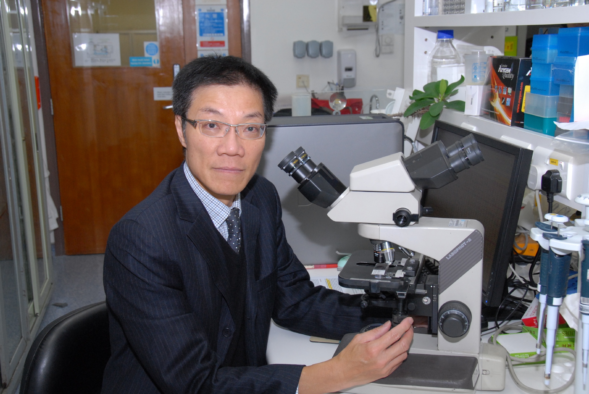 闞君鎖博士正從樣本提取胃癌基因 |