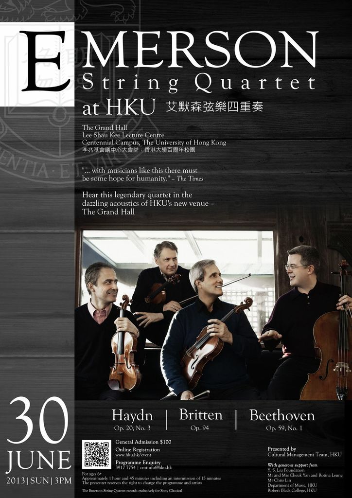艾默森弦樂四重奏的新面貌即將展現於香港大學全新的文化場地,誠邀蒞臨感受純美音色!