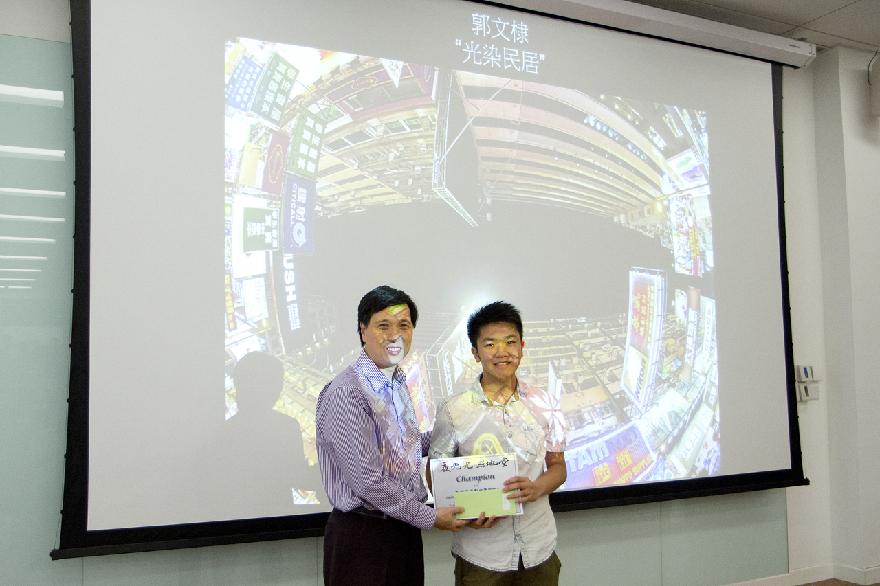 The “Light Pollution Project Competition 2014” aims at inviting secondary school students to investigate the problem of light pollution by carrying out a research project. Applications from 42 teams were received, involving 138 secondary school students from 17 schools. Findings of their projects are presented in the form of a poster to effectively illustrate the various extents or effects of light pollution. The best nine teams were selected for an oral presentation session at HKU held in mid-May for the champion, first runner up, second runner up, and honorary mention places. The award presentation ceremony was held on the same day. Judges were Mr Edwin Lau Che Feng, Head of Advocacy and Education of the Friends of the Earth (HK); Mr Eric Lee Ching Pong, Principal of the Ho Koon Nature Education cum Astronomical Centre; Mr Robert Leung Wai Ming, Curator of the Hong Kong Space Museum; Mr Yiu Vor, Vice Chairman of the Hong Kong Entomological Society; and Dr Jason Pun Chun Shing, HKU Department of Physics.