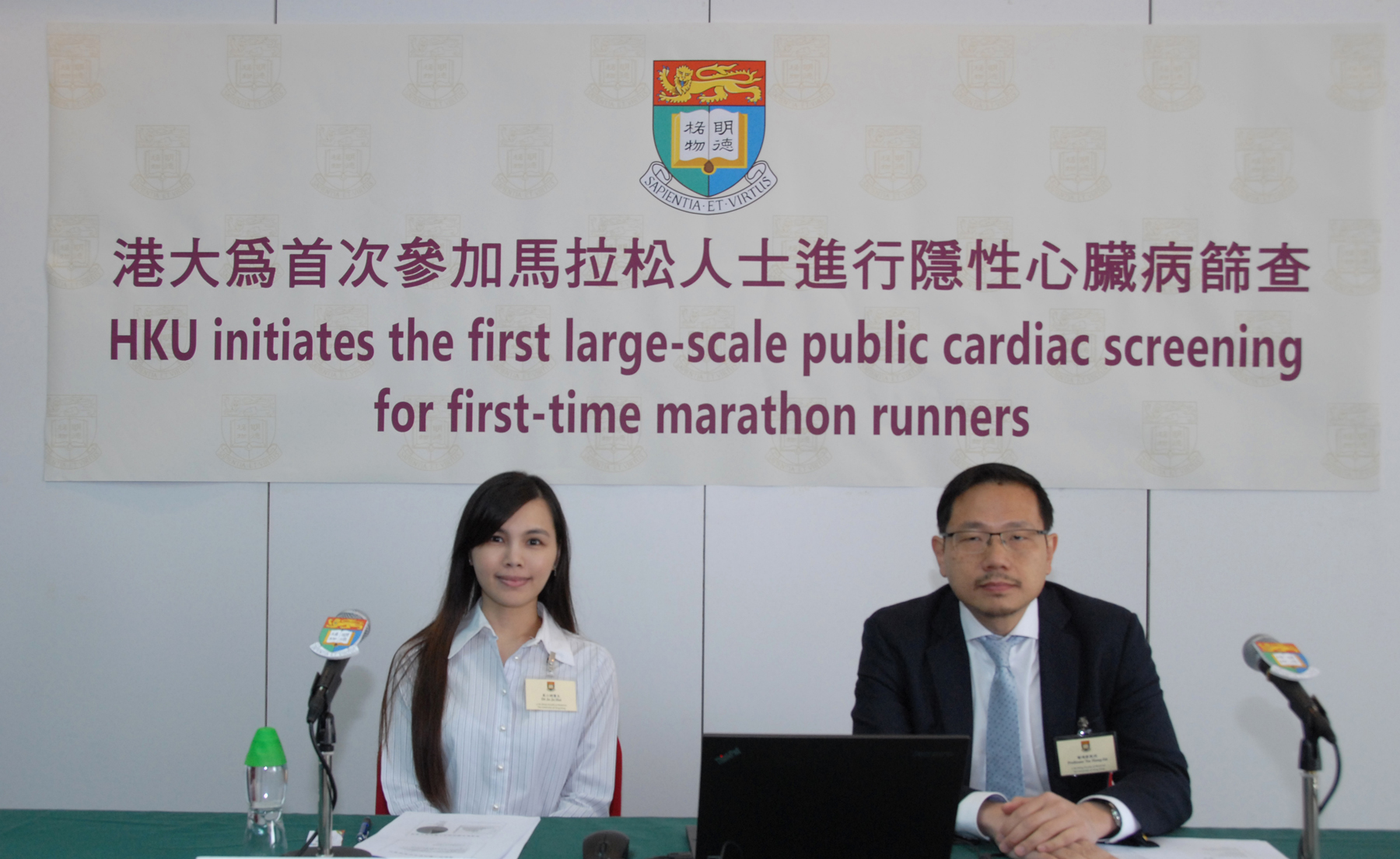 Dr Jo Jo Hai Siu-han, Clinical Assistant Professor of Department of Medicine, Li Ka Shing Faculty of Medicine, HKU (Left) and Professor Tse Hung-fat, William M W Mong Professor in Cardiology, Chair Professor of Department of Medicine, Li Ka Shing Faculty of Medicine, HKU (Right) introduced the Pre-participation Cardiovascular Screening Program for Hong Kong Marathon Runners (CASPAR).
