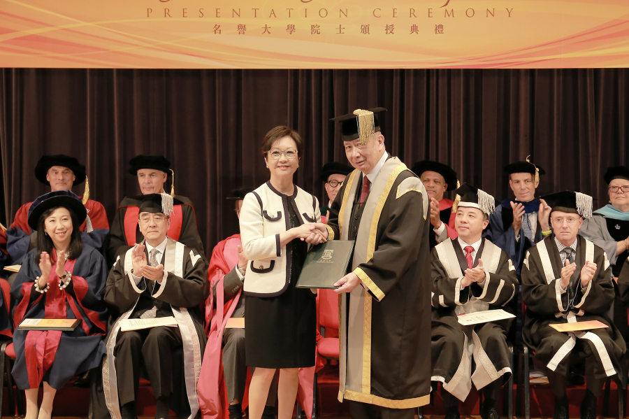 The University of Hong Kong (HKU) held a ceremony today (September 18) to present Honorary University Fellowships to three distinguished individuals, in recognition of their contributions to the University and to the community. HKU Pro-Chancellor Dr the Honourable Sir David Li Kwok Po presided at the ceremony.