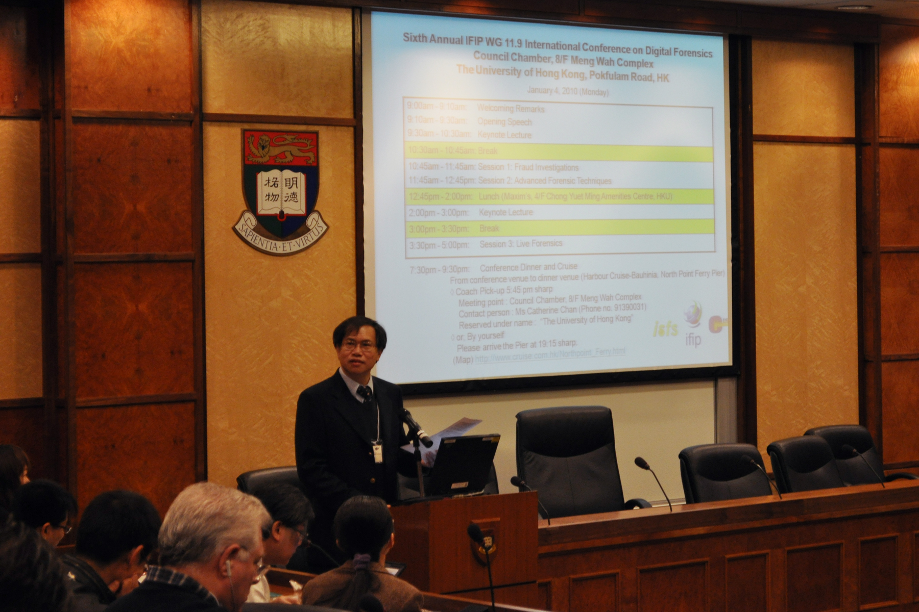 The Conference will cover areas of fraud investigations, advanced forensic techniques, live forensics, legal issues and privacy, evidence storage and analysis, and evidence collection, and in particular digital forensics research in China and issues facing digital and multimedia forensic science. It is organized in partnership with IFIP Working Group 11.9 on Digital Forensics, which is an active international community of scientists, engineers and practitioners dedicated to advancing the state of the art of research and practice in the emerging field of digital forensics, and the HKU Center for Information Security and Cryptography. The Conference is supported by the Information Security and Forensics Society (ISFS) of Hong Kong.