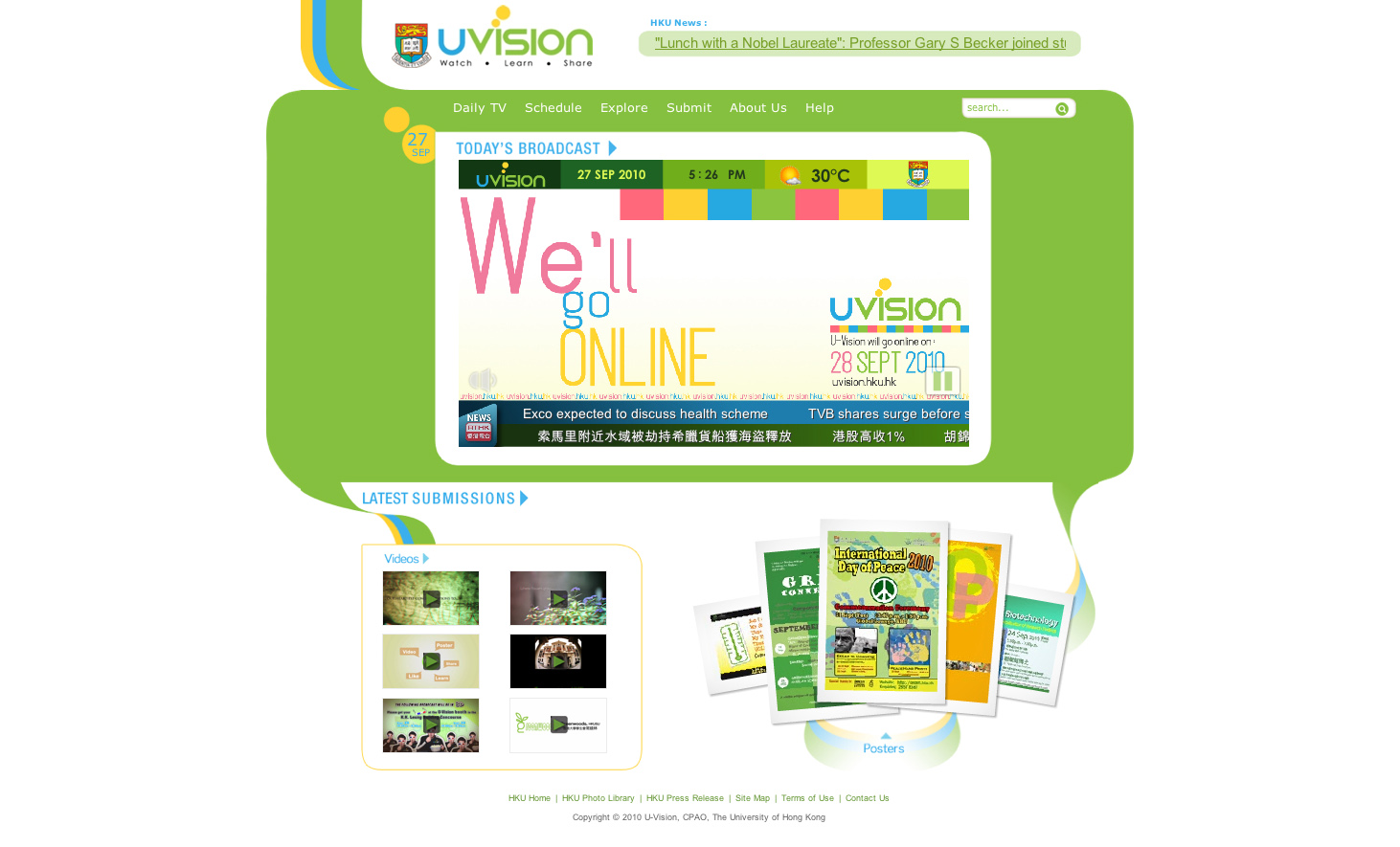 | An on-line information platform of the University of Hong Kong (HKU), U-Vision Online, will be launched tomorrow (September 28) to share with HKU community members and the general public the latest development in campus.
