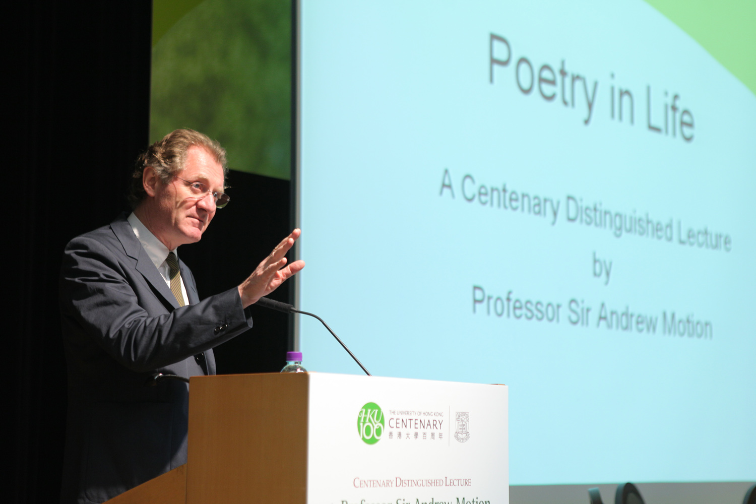 As part of its 100th anniversary celebrations in 2011-2012, the University of Hong Kong (HKU) is proud to present a series of Centenary Distinguished Lectures. The third lecture was delivered today (March 10) by Professor Sir Andrew Motion, Poet Laureate of the United Kingdom 1999-2009.