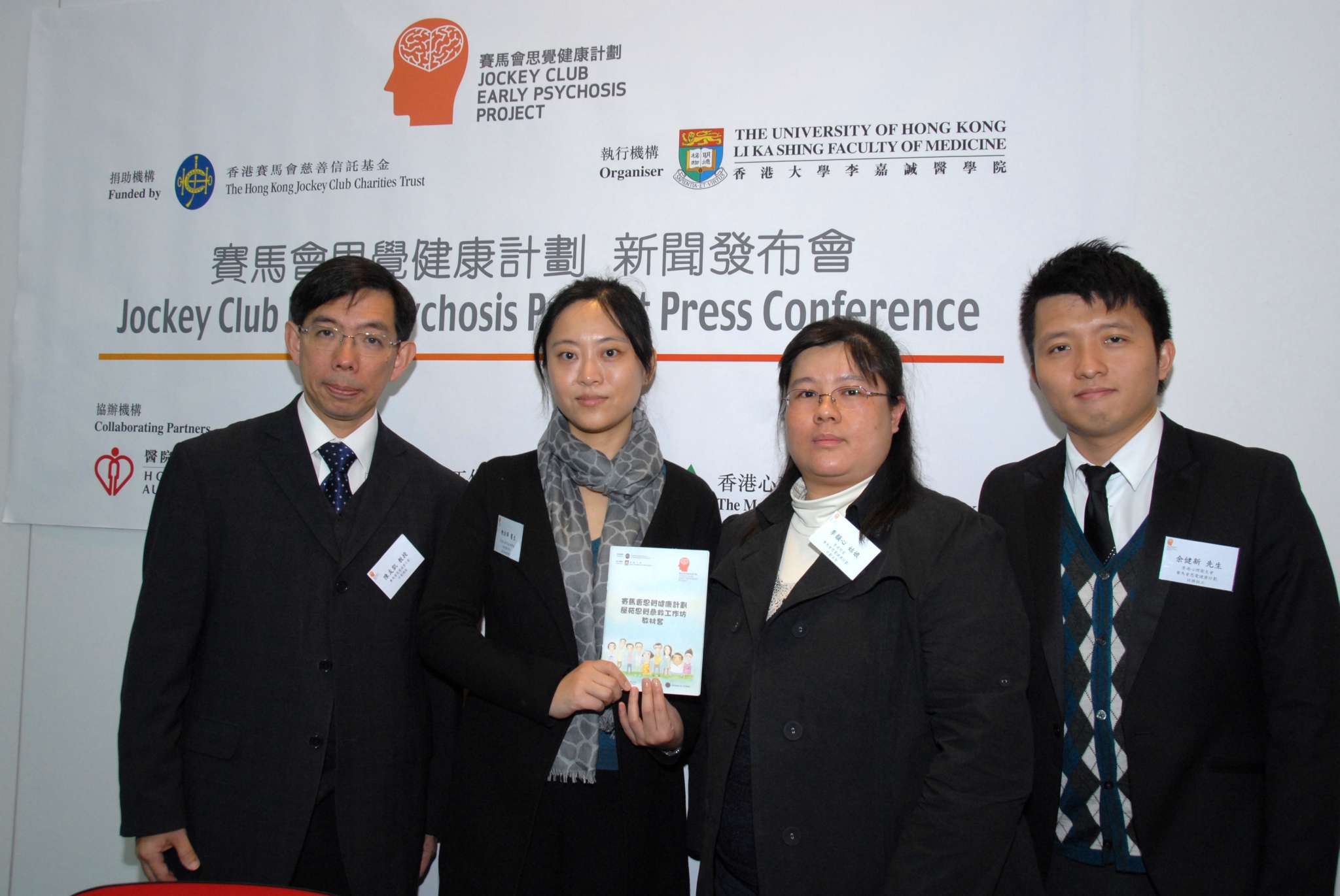 Led by the Department of Psychiatry, The University of Hong Kong Li Ka Shing Faculty of Medicine, JCEP is a five-year project, set up with $69 million donation from The Hong Kong Jockey Club Charities Trust, organised in collaboration with Hospital Authority, Caritas-Hong Kong and the Mental Health Association of Hong Kong. A multi-disciplinary team, comprising social workers, nurses, occupational therapists and researchers, has been set up to serve early psychosis patients aged over 25. It is expected that about 1,000 patients will receive individualised, phase-specific intervention services in the first two to four years after their first episode of psychosis. The team will provide specialised case management and psycho-social interventions by engaging the patients through home visits, phone contact, web-based communication and tracking system. Support for affected families will also be offered to help patients attain a full functional recovery.
