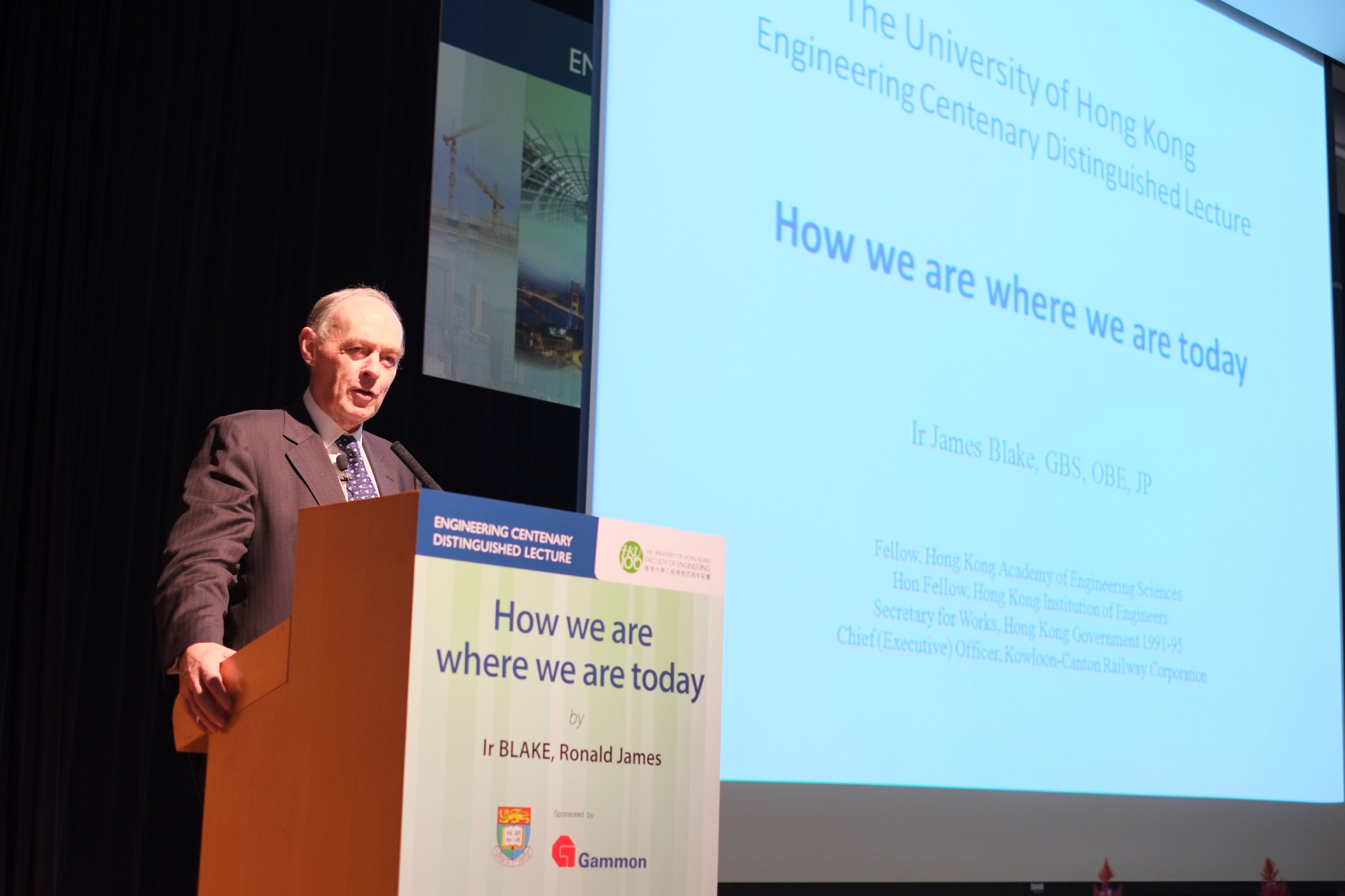 The Faculty of Engineering of the University of Hong Kong (HKU) held on October 5 (Friday) its fourth Engineering Centenary Distinguished Lecture entitled “How we are where we are today” delivered by Ir BLAKE, Ronald James, GBS, OBE, JP.