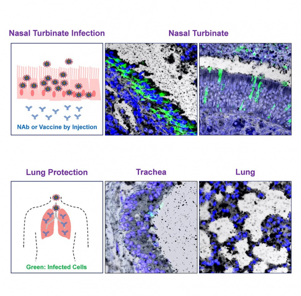 HKUMed research team reveals that while systemic HuNAb suppresses SARS-CoV-2 replication and injury in lungs, robust viral infection in the nasal turbinate may help the virus to evade antibody and therefore contribute to subprotection and reinfection. This finding not only reveals a mechanism underlying the difficulty of full protection against asymptomatic infection, but also highlights the importance of COVID-19 mucosal vaccine development.