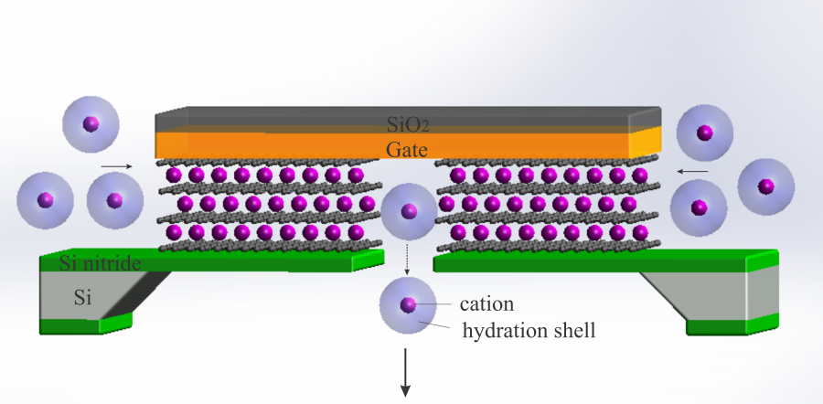 This breakthrough, recently reported in Science, not only provides fundamental understanding of fast ion sieving in atomic scale, but also leads to highly switchable ultrafast ion transport that can find important applications in electrochemical and biomedical applications.