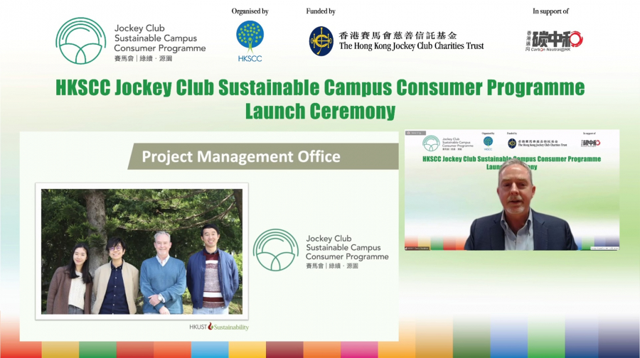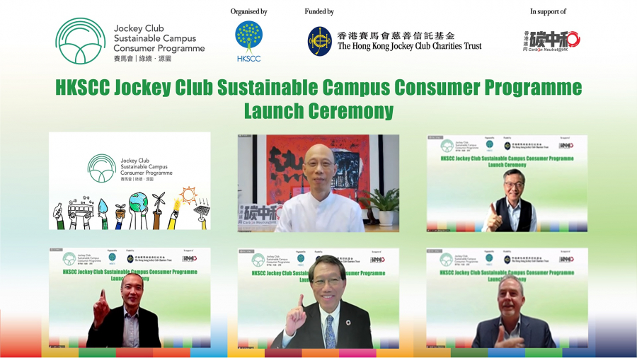 The Programme’s launch ceremony was held online on 21 January 2022. Officiating at the ceremony were Mr Wong Kam-sing, Secretary for the Environment of the Hong Kong SAR; Dr Lam Ching-choi, Chairman of the Council for Sustainable Development; Mr Bryan Wong, Head of Charities (Grant Making), The Hong Kong Jockey Club; Professor Rocky S. Tuan, Vice-Chancellor and President of The Chinese University of Hong Kong (CUHK), the 2021 convening institution of the HKSCC; and Mr Davis Bookhart, Chair of the Jockey Club Sustainable Campus Consumer Programme Steering Committee.