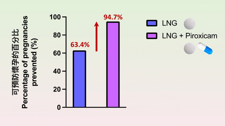 The research team conducted the first randomised, placebo-controlled trial in the world on the use of piroxicam, a long-acting nonsteroidal anti-inflammatory drug (NSAID) used to treat arthritis pain, which blocks prostaglandin production in the body, in combination with the levonorgestrel emergency contraceptive pill. The findings revealed that with the new combination regimen, only one out of 418 women became pregnant, while seven out of another 418 women receiving levonorgestrel and a placebo became pregnant. The results showed that the percentage of pregnancies prevented by piroxicam-levonorgestrel co-treatment (94.7%) was significantly higher than that of the levonorgestrel emergency contraceptive pill alone (63.4%). There was no significant difference in the occurrence of adverse effects, including changes to the menstrual bleeding pattern and stomach ache following intake of the two regimens.