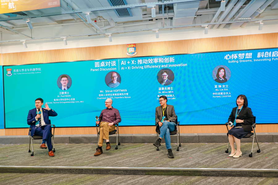 The opening ceremony was officiated by Professor Max Shen, Vice-President and Pro-Vice-Chancellor (Research) of HKU; Mr Wang Shourui, Director, Qianhai Authority of Shenzhen Government; Ms Wu Cheng, Deputy Director-General of the Department of Educational, Scientific and Technological Affairs of the Liaison Office of the Central People’s Government in the HKSAR; and Professor Xiaobo YIN, Director of Techno-Entrepreneurship Academy and Associate Vice President.