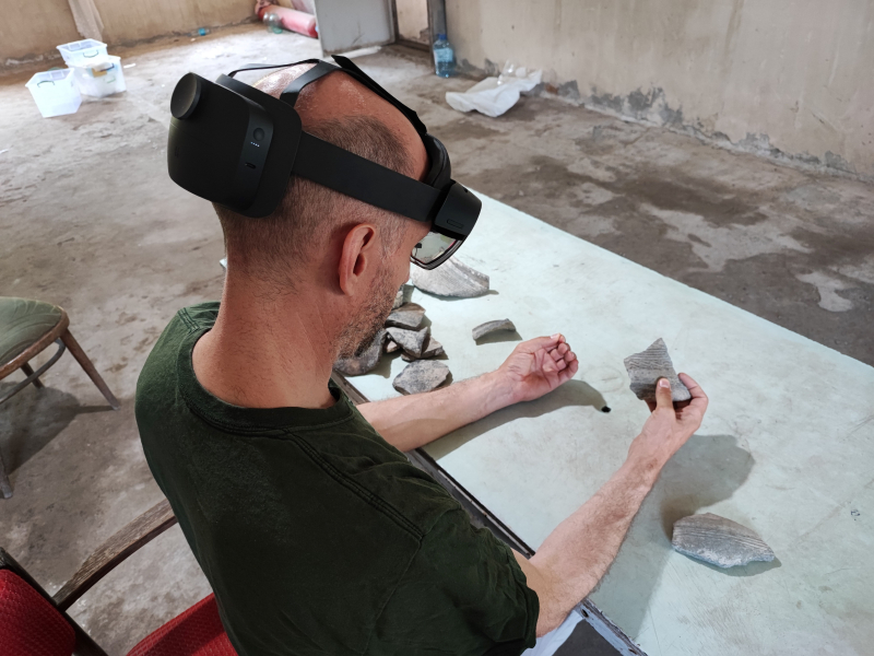 The team also employs an MR headset to compare 3D scanned ancient pottery sherds with physical ones, aiding in the analysis of inaccessible artifacts displayed in museums. They anticipate that in the future, AI will facilitate the matching of these sherds based on their shapes.