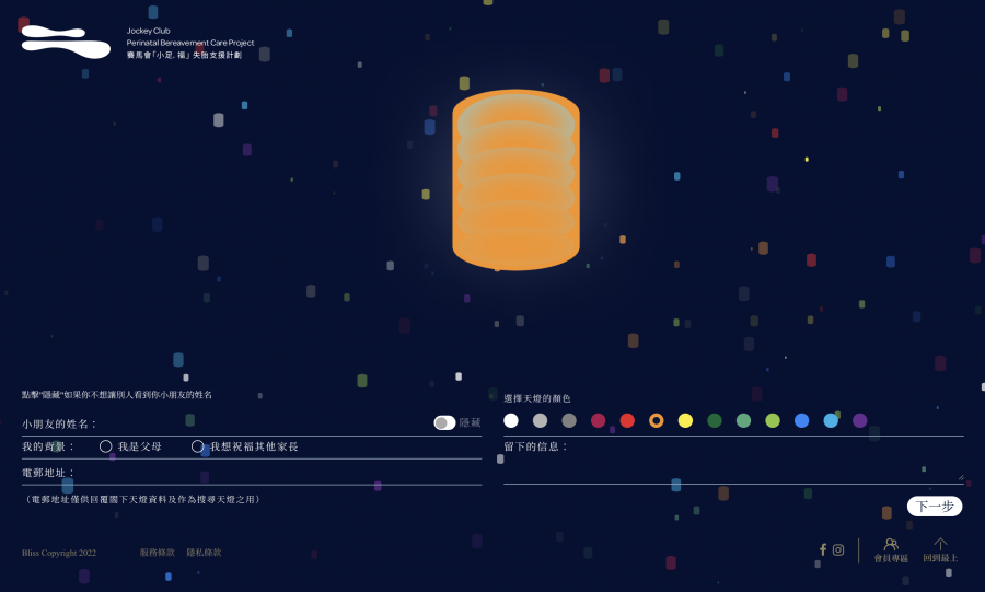 此外,計劃推出的網站(https://www.jcperinatal-bc.hk/)提供實用資訊及服務轉介。網站設有的「天燈傳遞愛」,父母可選擇天燈顔色,在天燈寫上對逝去孩子的說話,然後讓天燈在平台的夜空緩緩升起,藉以表達他們對孩子的思念,也祝福其他有相同經歷的家長。網站亦輯錄了講述8位家長如何渡過失胎經歷的短片,包括一位媽媽分享她和5位小天使說再見的經歷、失胎爸爸處理哀傷的方法、失胎媽媽對親友回應哀傷的感受等。網站内的「我們的家庭相冊」能讓父母及親友透過文字和影像的創作過程,分享逝去孩子的故事。