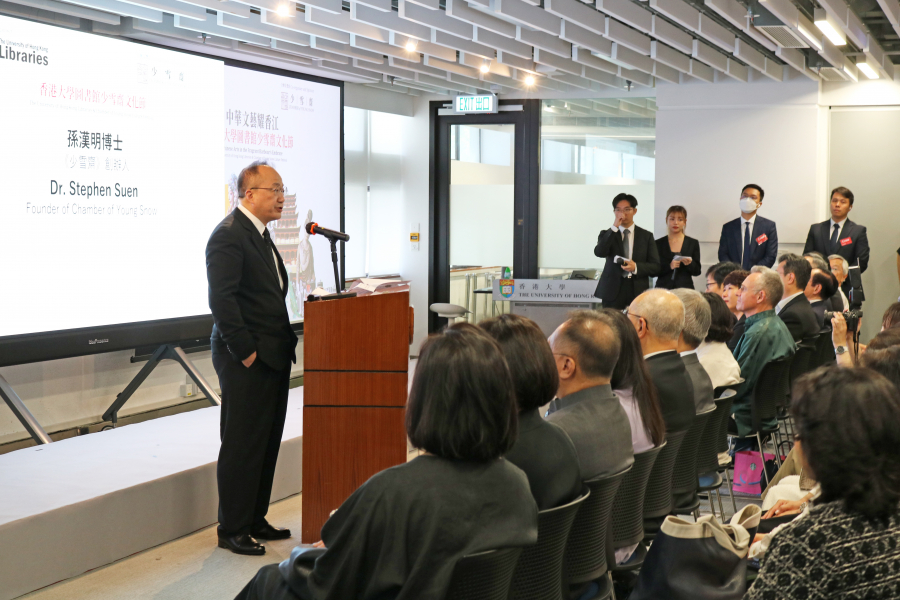 港大首席信息主管及大學圖書館館長伍麗娟女士衷心感謝中央政府及港大支持是次敦煌展覽,由敦煌考察到展覽開幕只有短短三個月作策劃和籌備,整個莫高窟45號以精準1比1複製,是首次在香港展出。感謝敦煌之友Jimmy Lo及李美賢老師,還有敦煌研究院及港大圖書館團隊在籌劃展覽過程中的辛勤付出,更要多謝少雪齋對文化節的慷慨支持,比原來的計劃有十倍增加,這些都是由不可能成變成可能。